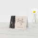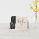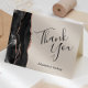 Cette élégante carte de remerciements mariage moderne dispose d'une bordure en aquarelle noire ornée d'une parties scintillant en or rose. Le texte personnalisable combine les mots "Merci" en écriture manuscrite noire et les noms de la mariée et du marié en caractères italiques sur un arrière - plan beige.