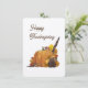 Cette carte vierge saisonnière présente une scène automne citrouille et feuille de récolte d'automne, avec "Bon thanksgiving" en typographie script.