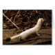 Cette carte de notes présente le stoïde (Mustela erminea), également connu sous le nom d'hermine ou belette à queue courte, une espèce de mustélide originaire d'Eurasie et d'Amérique du Nord. Son manteau d'hiver est blanc pur avec une pointe noire à la queue. En été, la fourrure mûrit à brun. C'est un chasseur féroce, qui se nourrit surtout de petits rongeurs, mais qui est tout à fait capable d'attraper des proies beaucoup plus grandes. Il s'arrête ici brièvement sur un bûcher tombé avant de poursuivre ses activités de chasse.