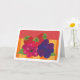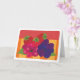 Cette illustration est un regroupement fantaisiste de fraises, de mûres, de framboises, de marionnettes et de feuilles verts. Dans l'arrière - plan est une nappe à rayures. L'image est une image numérique de papier peint à la main. Les couleurs sont rouge, violet, bleu, corail, orange, jaune, fuchsia et rose foncé. Inside Blank pour n'importe quelle occasion.