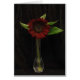 Cette élégante carte de notes présente un joli tournesol rouge dans un vase simple avec quelques feuilles verts dressés contre un arrière - plan en velours noir. A l'intérieur, une minuscule fleur sur un dégradé rose pâle.