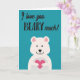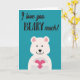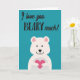 Carte Bleu avec un ours blanc et un cœur rose avec un je