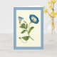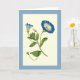 Une carte de voeux en blanc d'art du Curtis Botanical Magazine. Illustration d'une petite vigne florale de couleur bleue (Petite Convolvulus ou Bindweed).
