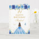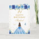 Carte Bleu Floral Brunette Cheveux fille Joyeux annivers