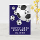 Bleu Foncé Football Ball Kids Garçon Bonne Carte Anniversaire. Personnalisez avec votre nom et faites une carte de voeux d'anniversaire cool pour un footballeur ou un fan de football.