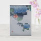 "Ajisai ni shōkin" traduit, Petit oiseau avec Hydrangea. Vintage Japonais Woodcut Print montre un petit oiseau perché sur une branche d'un plante de fleurs d'hydrangée bleu avec des feuilles verts doux. Personnalisez le verset intérieur ou laissez-le tel quel. Reproduction historique par Oriental Tea Garden.