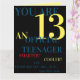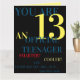 Vous avez 13 ans - Carte officielle d'anniversaire pour les adolescents pour les garçons. Coloré en jaune, bleu, rouge, avec une image colorée Joyeux Anniversaire à l'intérieur.