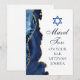 Un élégant bleu marine et une agate dorée ornent le côté de cette carte de félicitations moderne pour une fête de Bar Mitzvah. Mazel Tov ! Personnalisez-la sous l'étoile de David. Carte de vœux personnalisée parfaite pour une famille juive chic et élégante célébrant l'appel d'un garçon à la Torah.