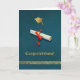 Image du diplôme sur l'arrière - plan bleu riche avec bande décorative ornementale, capuchon de graduation et inscription "Félicitations" en regard de feuille d'or en détresse