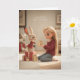 A warm and cozy birthday card featuring a blonde girl sitting on a soft rug, receiving a gift from an adorable bunny dressed in a red outfit. Surrounded by wrapped presents and soft neutral tones, the scene captures a sweet and joyful moment of surprise and celebration. Perfect for anyone who loves heartfelt, charming birthday designs.