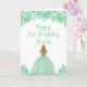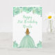 Cette carte d'anniversaire présente des fleurs florales à la menthe verte imitation parties scintillant et une belle princesse aux cheveux blonds et une robe élégante. C'est parfait pour une fête d'anniversaire.