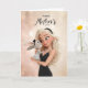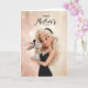 A charming and elegant Mother’s Day greeting card featuring a blonde mother lovingly holding an adorable bunny dressed in a polka-dot outfit. Set against a soft, glowing background with golden sparkles, this sweet illustration captures a tender moment of affection and warmth. A perfect card for celebrating a wonderful mom with a touch of elegance and adorable charm.