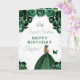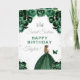Cette carte d'anniversaire élégante et glamour en sweet sixteen peut être personnalisée avec un nom ou un titre comme fille, petite-fille, nièce, ami etc. Le design présente une belle princesse aux cheveux blonds dans une robe de bal vert foncé. Le texte combine écriture manuscrite et polices sans serif modernes pour un look élégant et sophistiqué. Les arrangements floraux, papillons et confettis d'or créent un mélange parfait de rustique et de chic. Graphiques par www.etsy.com/uk/shop/SunflowerDayLove