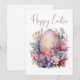 A pastel Easter egg is nestled among vibrant spring flowers, with a cheerful orange bird perched nearby. This elegant card blends seasonal symbols with artistic flair, perfect for sending Easter blessings with style