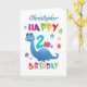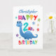 Une carte spéciale de 2ème anniversaire ! Cette carte de deuxième anniversaire très amusante présente un dinosaure bleu, de jolies étoiles et un texte coloré. Un design mignon pour quelqu'un qui aura deux ans. Ajoutez le nom de l'enfant du 2e anniversaire à l'avant de la carte pour la customiser pour le garçon ou la fille spécial. Ensuite, changez le message à l'intérieur pour le personnaliser.