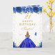 Cette carte d'anniversaire élégante et glamour peut être personnalisée avec un nom ou un titre comme fille, petite-fille, nièce, ami etc. Le design présente une belle princesse aux cheveux blonds et à la peau claire dans une robe de bal bleu royal. Le texte combine écriture manuscrite et polices sans serif modernes pour un look élégant et sophistiqué. Les compositions florales, les papillons et les confettis d'or créent un mélange parfait de rustique et de chic. Graphiques par www.etsy.com/uk/shop/SunflowerDayLove
