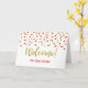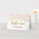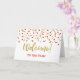 Bienvenue sur la carte d'équipe pour les nouveaux employés en motif confetti rouge et or.