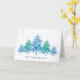 Blue Green aquarelle pins forêt d'hiver illustration carte de voeux de vacances. Ce design de pins aquarellés sur une nuit d'hiver enneigée avec les étoiles et la lune, crée une carte de Noël festive pour la saison des fêtes. C'est la saison sur le devant et personnalisez l'intérieur avec votre nom de famille.