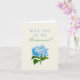 Carte de proposition pour votre fête de mariée, cette carte blanche douce comprend une illustration d'hydrangée bleue antique avec un texte classique et facile à personnaliser vous permettant de choisir comment "proposer" aux membres de votre parti de mariée.