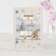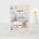 Carte Blue Silver Snowflakes Window Teddy Bear Christmas