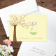 Une carte de voeux avec l'art original de Mango Moon Studio pour la nouvelle arrivée, représentant deux bleuets et un berceau accroché à un cerisier en fleurs, accompagné par le verset, Un tas de joie à aimer et à chérir !