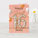 Célébrez son jalon avec une carte aussi éblouissante qu'elle. Ce modèle Sweet 16 présente un "16" audacieux rempli de sphères perles et encadré d'or brillant, dressé contre un arrière - plan rose roux avec des ballons flottants d'or blanc et métallique. De minuscules confettis scintillent à travers le fond, ajoutant une touche festive. Personnalisez le devant avec son nom et éditez l'intérieur avec votre propre message. Également disponible en téléchargement numérique instantané pour un don rapide et réfléchi.