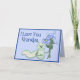 Cette jolie chenille a un bouquet de fleurs bleues. L'arrière - plan est des marguerites bleues et des bordures bleues plus foncées. Texte dit Je t'aime grand-père devant la carte. Inside verse. L'espace de salutation et de clôture peut être customisé par vous. Poster correspondant disponible.