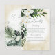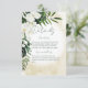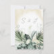 Cette carte de détails mariage est décorée avec de belles plantes tropicales luxuriantes et des fleurs blanches sur un arrière - plan d'aquarelle de sable jaune doux. Parfait pour la destination ou le mariage sur la plage. Créé par Simply Farmhouse Press.