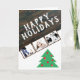 Bois rustique Arbre de Noël Rouge 3 Photo Carte de Noël. Le design est composé d'un arbre de Noël simple, de bois foncé rustique et de flocons de neige blancs. Carte de vacances amusante avec un collage photo avec 3 photos - personnalisez avec 3 de vos photos préférées. Vous pouvez également modifier le texte Joyeuses fêtes.
