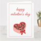 Faites plaisir à quelqu'un de spécial avec cette adorable carte de Saint-Valentin représentant une boîte de chocolats en forme de cœur nouée avec un ruban rouge. Un design doux et romantique, parfait pour partager l'amour, l'affection et les vœux sincères le jour de la Saint-Valentin.