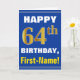 Carte Bold, Blue, Faux Gold 64th Birthday w/ Name Card