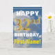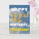 Ce simple design de carte de voeux sur le thème de l'anniversaire présente un voeu d'anniversaire chaleureux comme "HEUREUX 32e anniversaire, prénom!" sur le devant, en texte gras sur un arrière - plan représentant un ciel bleu avec des nuages blancs et gris. Le numéro d'anniversaire a une apparence de coloration fausse/imitation or. Le nom sur le devant peut être personnalisé. L'intérieur comporte un message d'anniversaire qui peut être customisé. Une carte de voeux comme celle-ci pourrait être une façon amusante d'offrir des voeux d'anniversaire à quelqu'un qui célèbre son trente-deuxième anniversaire. [~Z0000284]