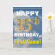 Ce simple design de carte de voeux sur le thème de l'anniversaire présente un voeu d'anniversaire chaleureux comme "HEUREUX 35ème anniversaire, prénom!" sur le devant, en texte gras sur un arrière - plan représentant un ciel bleu avec des nuages blancs et gris. Le numéro d'anniversaire a une apparence de coloration fausse/imitation or. Le nom sur le devant peut être personnalisé. L'intérieur comporte un message d'anniversaire qui peut être customisé. Une carte de voeux comme celle-ci pourrait être une façon amusante d'offrir des voeux d'anniversaire à quelqu'un qui célèbre son trente-cinquième anniversaire. [~Z0000284]