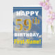 Ce simple design de carte de voeux sur le thème de l'anniversaire présente un voeu d'anniversaire chaleureux comme "HEUREUX 59ème anniversaire, prénom!" sur le devant, en texte gras sur un arrière - plan représentant un ciel bleu avec des nuages blancs et gris. Le numéro d'anniversaire a un look de couleur imitation or. Le nom sur le devant peut être customisé. L'intérieur comporte un message d'anniversaire qui peut être customisé. Une carte de voeux comme celle-ci pourrait être une façon amusante d'offrir des voeux d'anniversaire à quelqu'un qui célèbre son cinquante-neuvième anniversaire. [~Z0000284]
