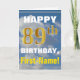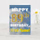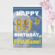 Ce simple design de carte de voeux sur le thème de l'anniversaire présente un voeu d'anniversaire chaleureux comme "HEUREUX 89ème anniversaire, prénom!" sur le devant, en texte gras sur un arrière - plan représentant un ciel bleu avec des nuages blancs et gris. Le numéro d'anniversaire a un look de couleur imitation or. Le nom sur le devant peut être personnalisé. L'intérieur comporte un message d'anniversaire qui peut être customisé. Une carte de voeux comme celle-ci pourrait être une façon amusante d'offrir des voeux d'anniversaire à quelqu'un qui célèbre son quatre-vingt-neuvième anniversaire. [~Z0000284]