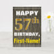 Ce simple design de carte de voeux sur le thème de l'anniversaire présente un voeu d'anniversaire chaleureux comme "HAPPY 57th BIRTHDAY, First-Name!" sur le devant, en texte gras sur un faux motif d'apparence en bois arrière - plan. Le numéro d'anniversaire a une apparence de coloration fausse/imitation or. Le nom sur le devant peut être personnalisé. L'intérieur comporte un message d'anniversaire personnalisable. Une carte de voeux comme celle-ci pourrait être une façon amusante d'offrir des voeux d'anniversaire à quelqu'un qui célèbre son cinquante-septième anniversaire. [~Z0000280]