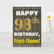 Carte Bold, Faux Wood, Faux Gold 98e anniversaire + Nom