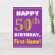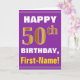 Carte Bold, Purple, Faux Gold 50th Birthday w/ Name Card