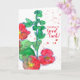 Souhaitez à quelqu'un spécial au revoir et bonne chance avec cette carte de voeux décorée de joyeuses hollyhocks rouge vif dessinés avec de l'encre et de l'aquarelle accentuée avec des bec rouges. Vous pouvez modifier le message pour qu'il corresponde à vos besoins.