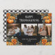 Belle carte Thanksgiving avec des citrouilles aquarelles sur l'avant et un motif de buffle noir et blanc à l'arrière. Personnalisez facilement cette 3 photo Carte Thanksgiving avec vos photos, le nom de famille et l'année.