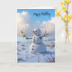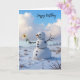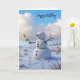 Carte Bonhomme de neige d'anniversaire tenant une margue
