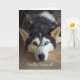 Chaque amoureux des chiens appréciera cette carte, représentant un Husky sibérien avec un oeil brun et un oeil bleu-blanc. Le Husky est au repos avec sa tête en bas, donnant un regard très âme dans les yeux du destinataire. La personnalisation complète est disponible sur le texte. Photographie et design ©Vann-Horn Photo et design créatifs.