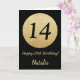 Bonne carte de Parties scintillant Black and Gold 14th Birthday avec nom personnalisé. Pour plus de personnalisation, cliquez sur le bouton "Customiser" et utilisez notre outil de conception pour modifier ce modèle.