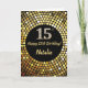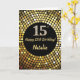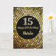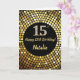Bonne carte de Parties scintillant Black and Gold 15th Birthday avec nom personnalisé. Pour plus de personnalisation, cliquez sur le bouton "Customiser" et utilisez notre outil de conception pour modifier ce modèle.