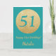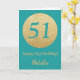 Carte Bonne 51e Anniversaire Turquoise et Parties scinti