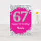 Carte d'anniversaire 67 ans rose chaud et argent avec nom personnalisé. Pour une personnalisation plus poussée, veuillez cliquer sur le bouton "Personnaliser" et utiliser notre outil de conception pour modifier ce modèle.
