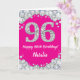 Bonne 96e Anniversaire Hot Pink et Silver Parties scintillant Card avec nom personnalisé. Pour plus de personnalisation, cliquez sur le bouton "Customiser" et utilisez notre outil de conception pour modifier ce modèle.