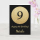 Bonne 9e anniversaire Black and Gold Parties scintillant Card avec nom personnalisé. Pour plus de personnalisation, cliquez sur le bouton "Customiser" et utilisez notre outil de conception pour modifier ce modèle.