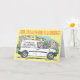 Wishing Good Luck with Your New Business - une carte avec illustration d'une Van d'entreprise avec le nom d'entreprise sur le côté. Image couleur d'un conducteur au volant d'une fourgonnette blanche.