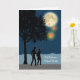 Mi-automne Festival Wives, carte de voeux papier. Illustration d'un couple marchant sous un ciel étoilé et regardant des lanternes du ciel flottant vers une pleine lune. Thème Silhouette avec étoiles et clair de lune. Image et vers © Shoaff Ballanger Studios / 2015.